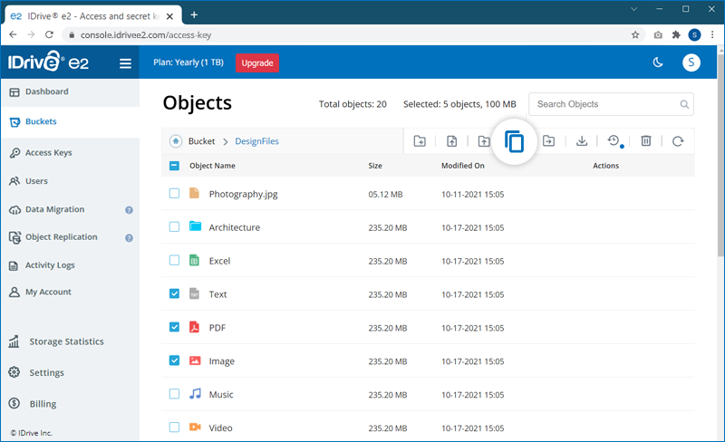 Note: IDrive® e2 does not support copying the entire folder.
