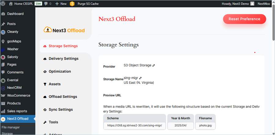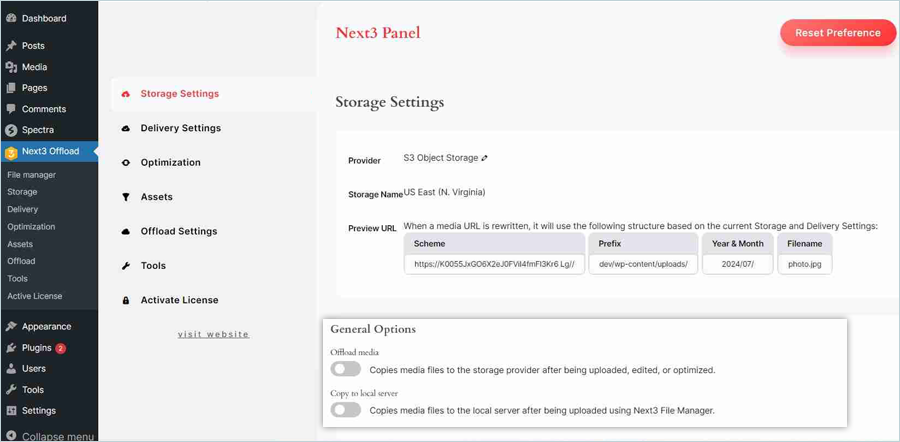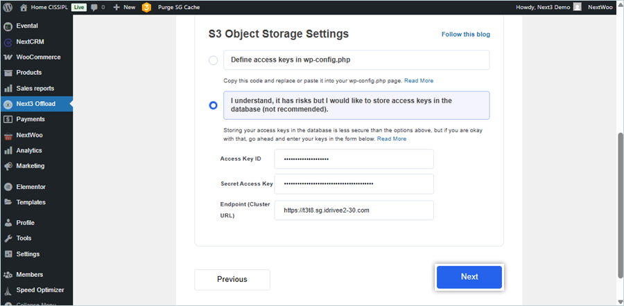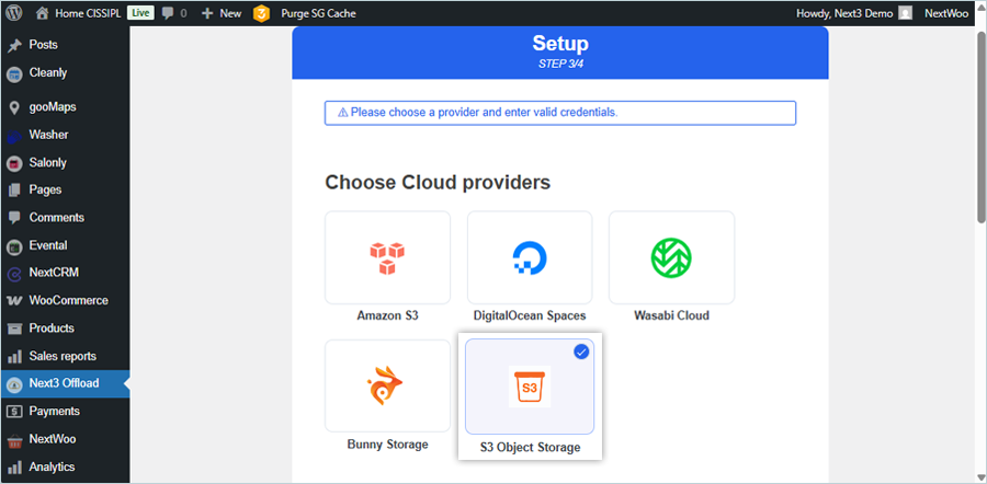 1. In the WordPress dashboard, go to Next3 Offload > Storage Settings.