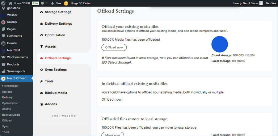 1. In the WordPress dashboard, go to Next3 Offload > Offload Settings.